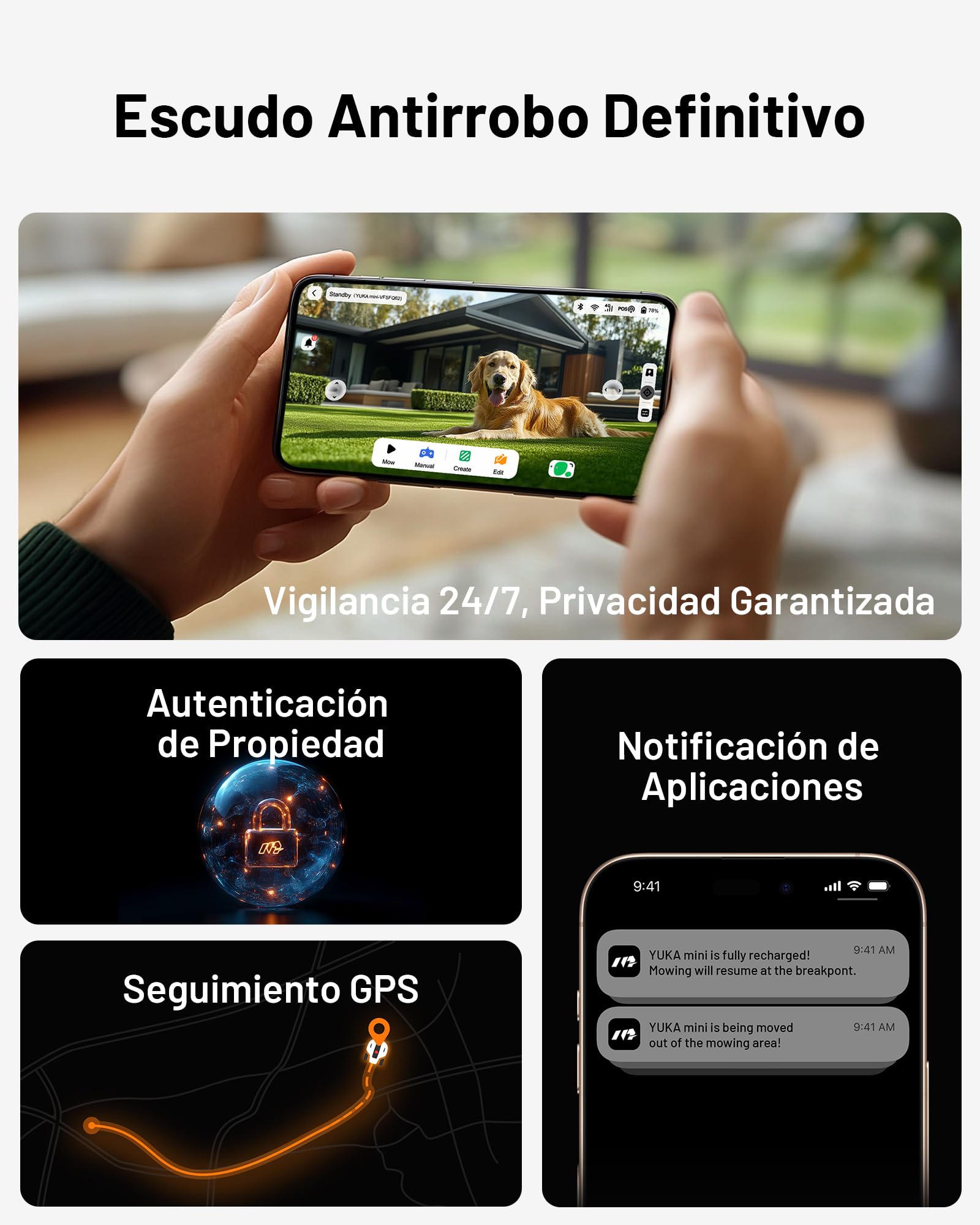 - Más Ligero, pero Más Inteligente: YUKA mini se adapta a sus necesidades, gestionando hasta 15 zonas de siega con tareas y direcciones personalizadas a la vez que crea caminos automatizados entre ellas, sin necesidad de levantarlas manualmente. Establezca zonas prohibidas para parterres, piscinas y áreas de juego, y YUKA mini las evitará estrictamente.
