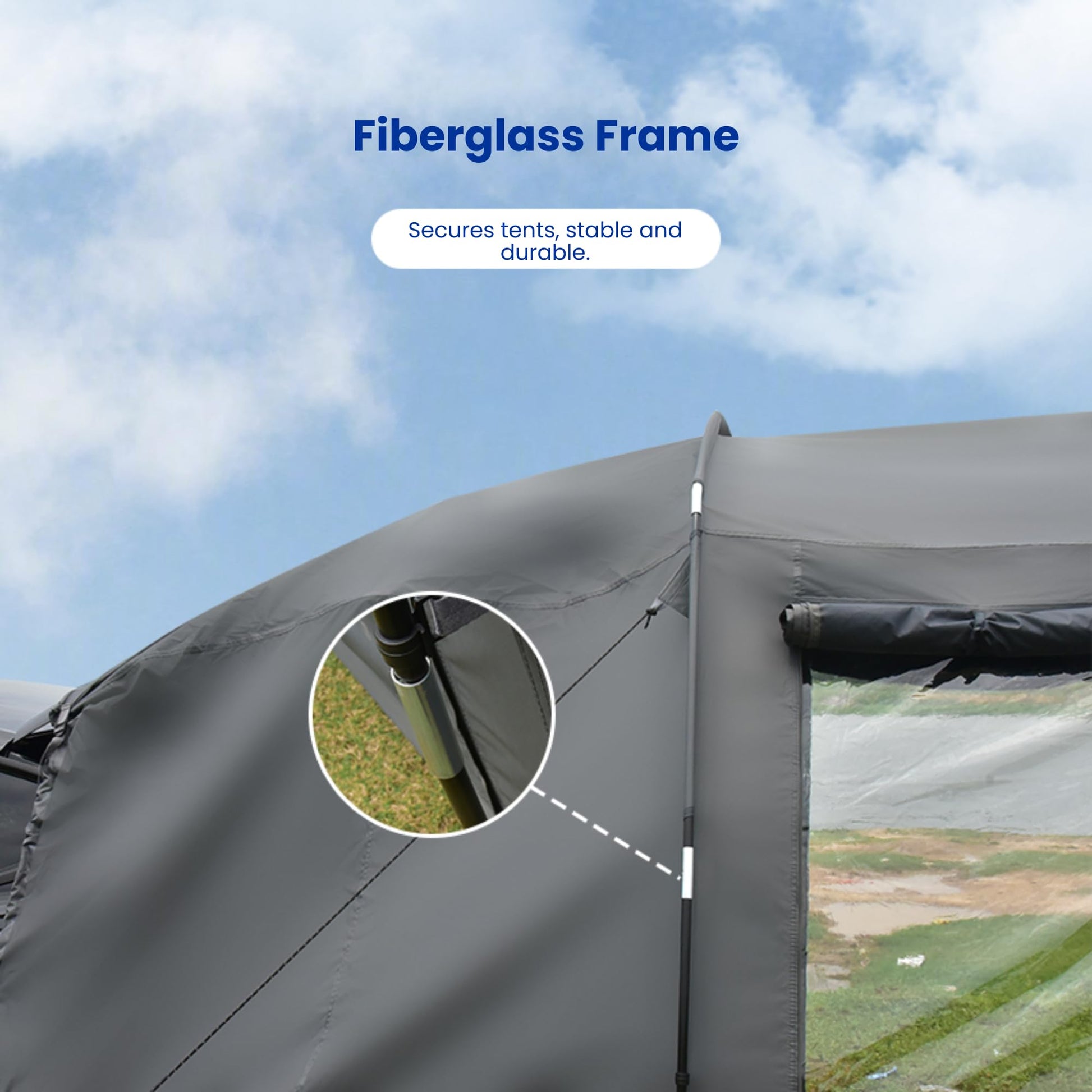 - Construcción resistente: el marco de fibra mejora la estabilidad y durabilidad y asegura tu tienda en su lugar mientras soporta los rigores del uso al aire libre.